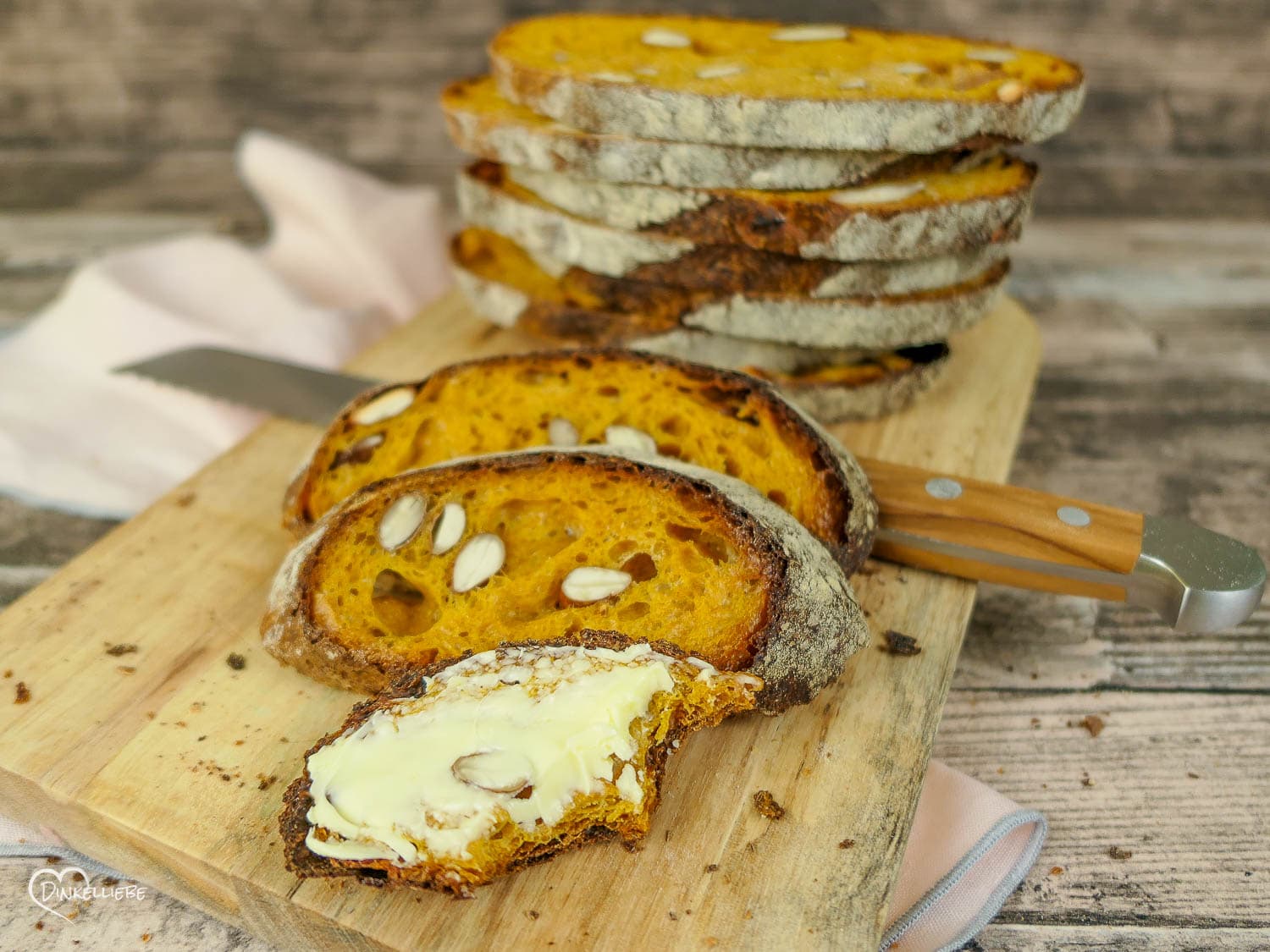 Weil es gerade so schön zu Ostern passt habe ich hier mein Karottenbrot mit gerösteten Mandeln für euch. Es ist kein übliches Karottenbrot mit Karottenraspeln, es ist etwas ganz Besonderes. Der Teig wird statt mit Wasser mit Karottensaft angesetzt und dieser verleiht dem Brot seine wunderschön orange Farbe. 🥕